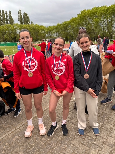 Ses aînées, Mia Couillez, qui améliore son record du 120 m en s'imposant en 15''83, Margot Lasserre au javelot avec un lancer de 23,31 m et Cloé Toninato, avec un jet à 8 m au poids, la rejoignent sur la plus haute marche du podium.