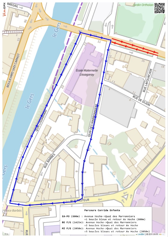 Départ 14h45 avenue Hoche direction quai de Marronniers puis 3 fois le tour du quartier (quai des marronniers, place St Pierre et terrain de boules)