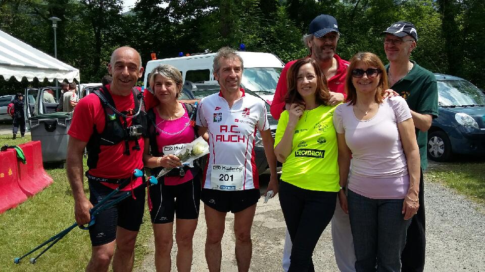 crédit photo P LESCOS Sur la photo : De G à D : T.Castadére, B.Bussi, P.Lescos, Isa et J.L Bernerd, P. Breil, F.Gasverde.)Patrick Lescos est de nouveau parti tutoyer les sommets ce WE au Trail du Cagire